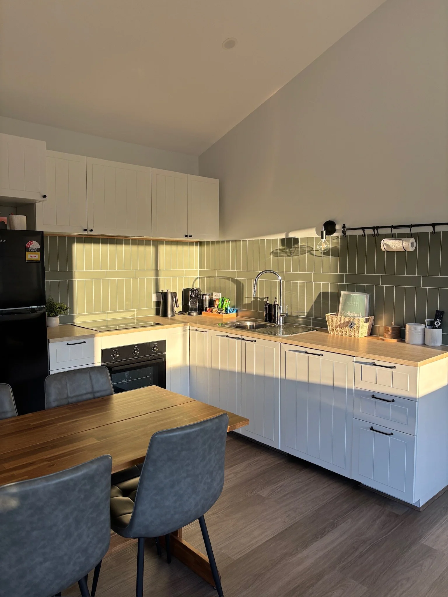 Inside, you'll find a cozy cabin with modern amenities, creating an ideal spot to unwind. The cabin offers 2 bedrooms with 1 queen bed and 1 double bed. The bathroom features a walk in shower with ample towels and linen for your use. The kitchen is equipped with everything you’ll need during your stay. Sit out and enjoy the sunsets on your deck, overlooking the horse yards and cows. During the cooler months, the fire pit can be lit, while you sit out enjoying the stars.