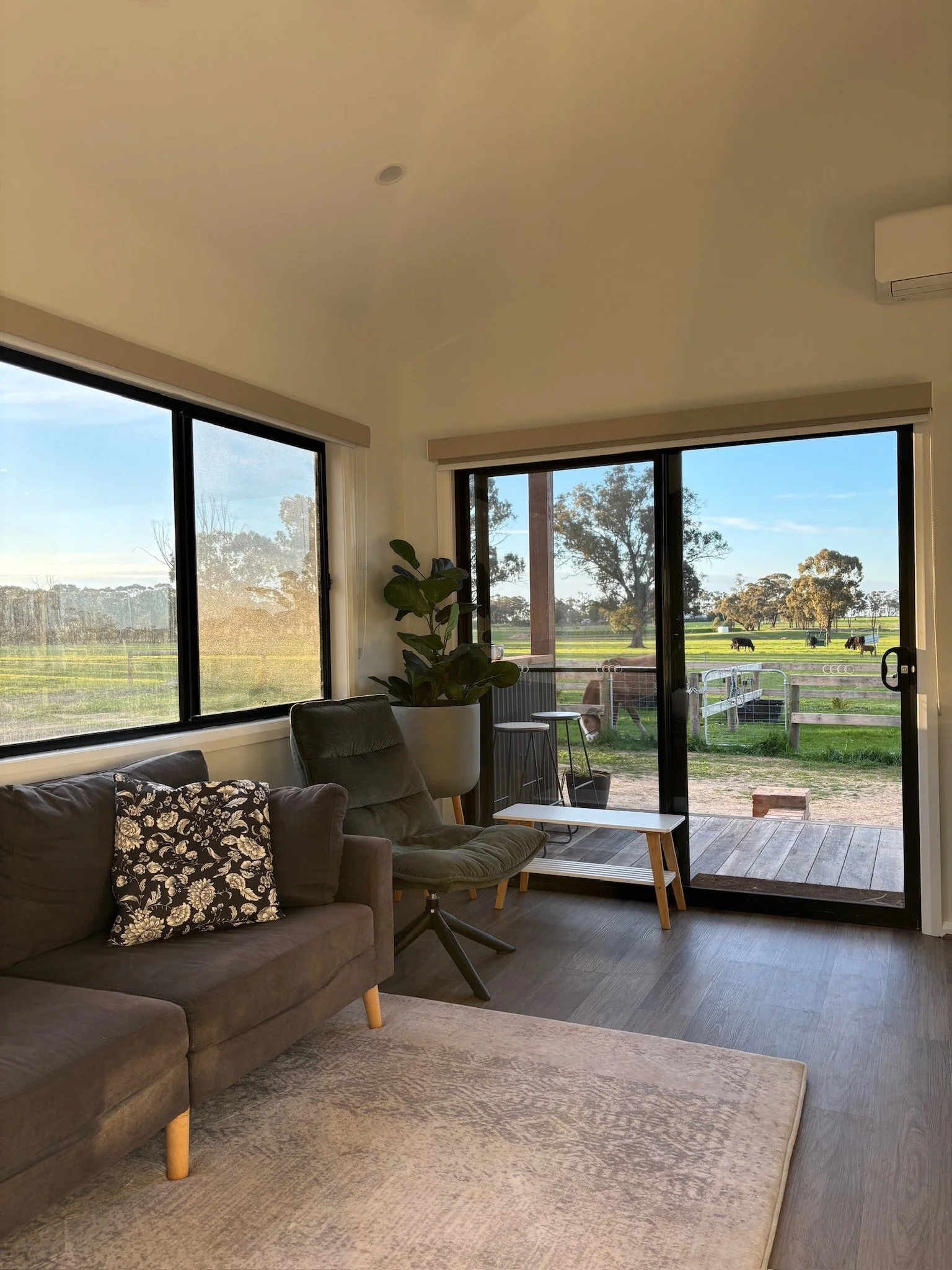 Our Cabin is nestled amongst the forest’s border and offers breathtaking sunset views over our picturesque property and farm animals. It's the perfect retreat for nature lovers and equestrians alike, with ample space to holiday with your horses and explore the endless forest trails, right outside our front gate. Enjoy the tranquility of rural life while soaking in stunning landscapes right from your deck.